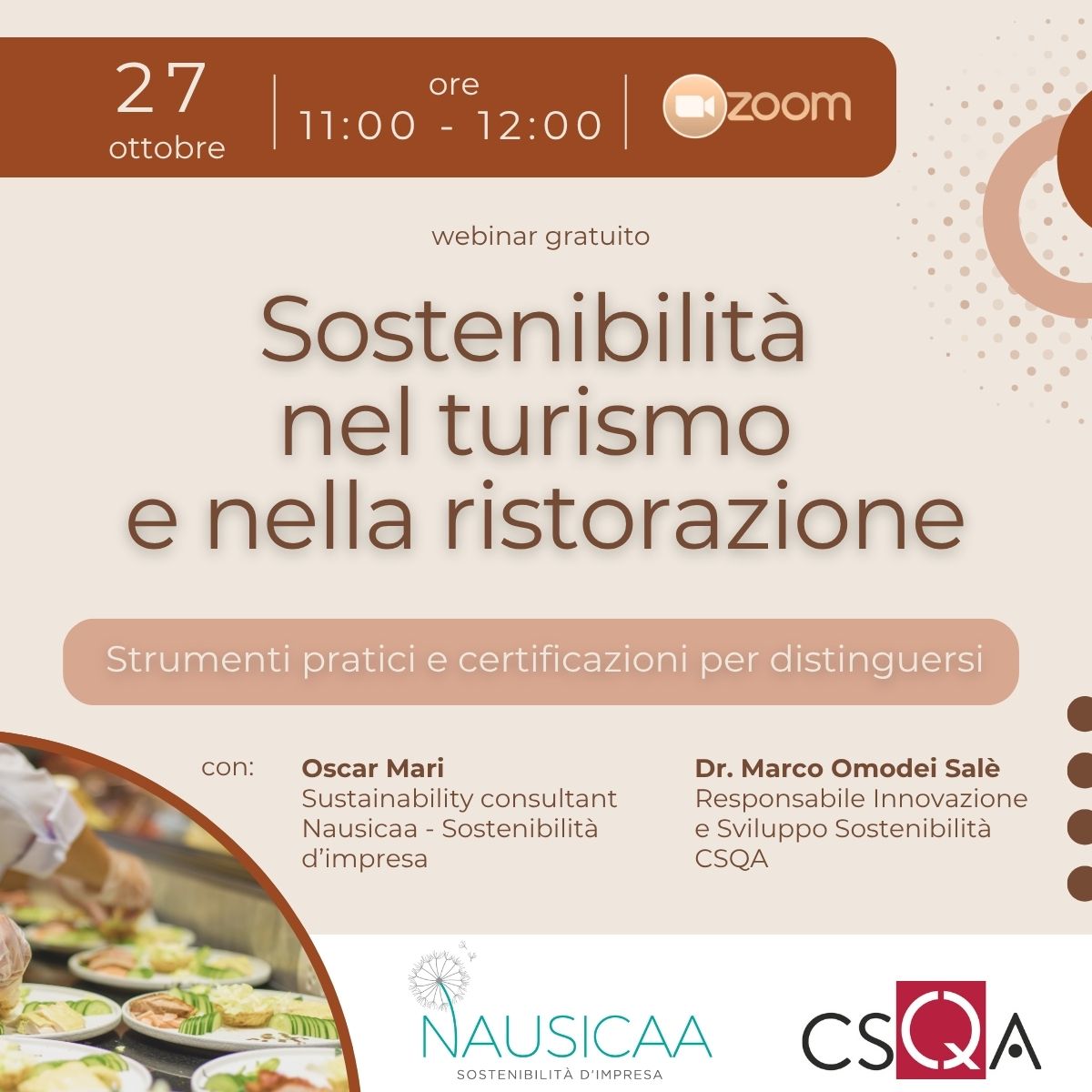 Come rendere sostenibili turismo e ristorazione? Lo scopriremo nel webinar del 27 ottobre alle ore 11:00. Nel mondo dell’hotellerie e della ristorazione la sostenibilità è